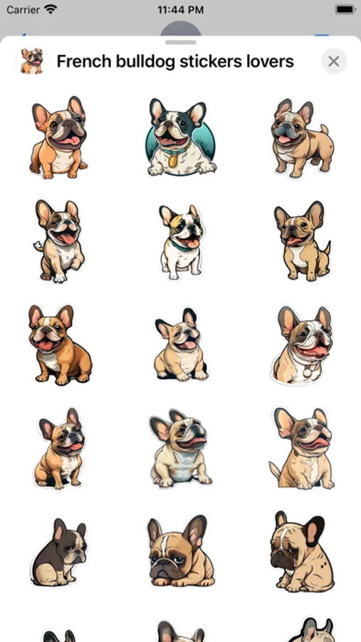 Whether you want to send an adorably happy French Bulldog to a friend, or a silly sticker of a Bulldog making a funny face, this sticker pack has you covered. With a variety of options to choose from, you'll never run out of ways to express your love for these adorable pups. So download the "French Bulldog" sticker pack today and add some fun and cuteness to your iMessage conversations!