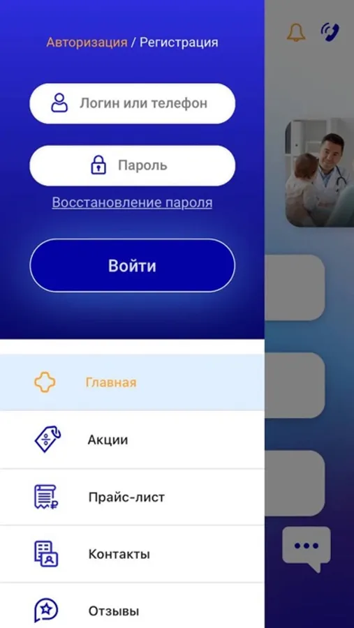 - Результаты анализов, описание исследований лучевой и ультразвуковой диагностики с возможностью экспорта документа в PDF, отправки/сохранения данных через телефон;