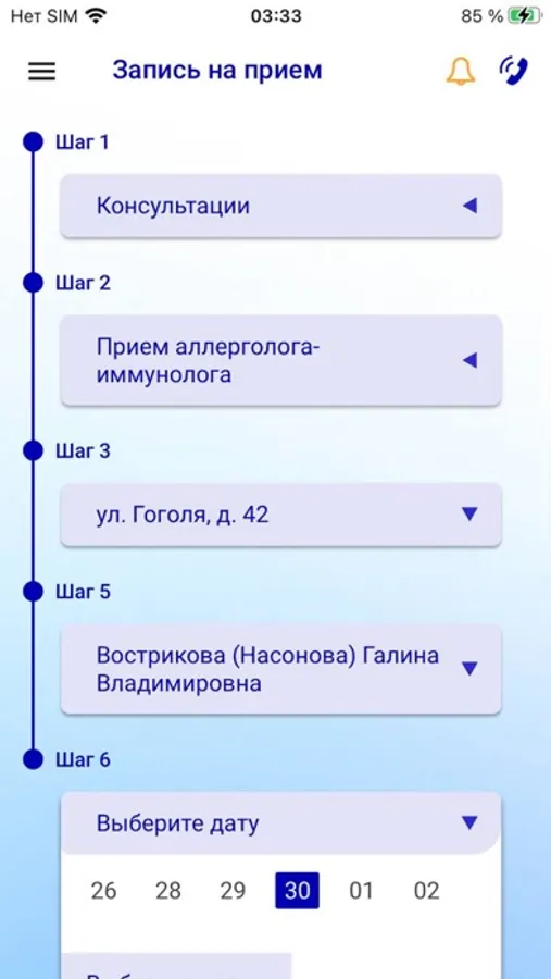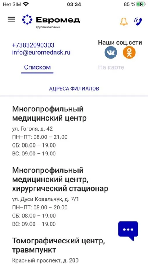 - Форму электронной записи к специалистам клиник;
