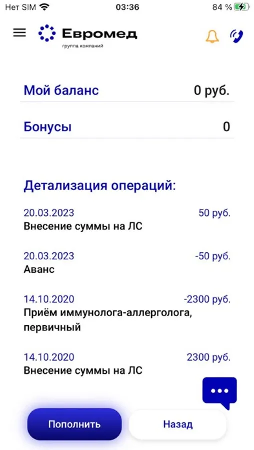 - Информацию по бонусному счету и историю оплат;