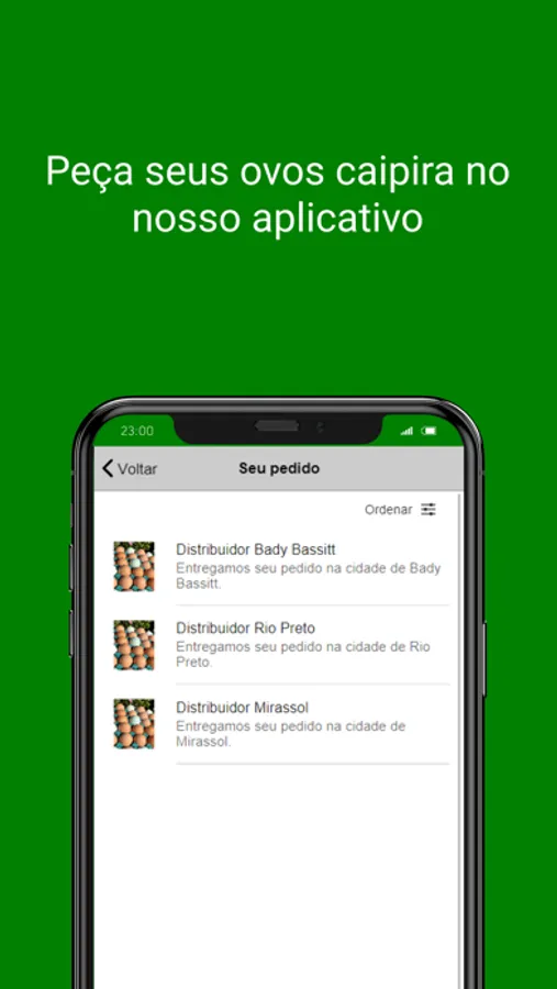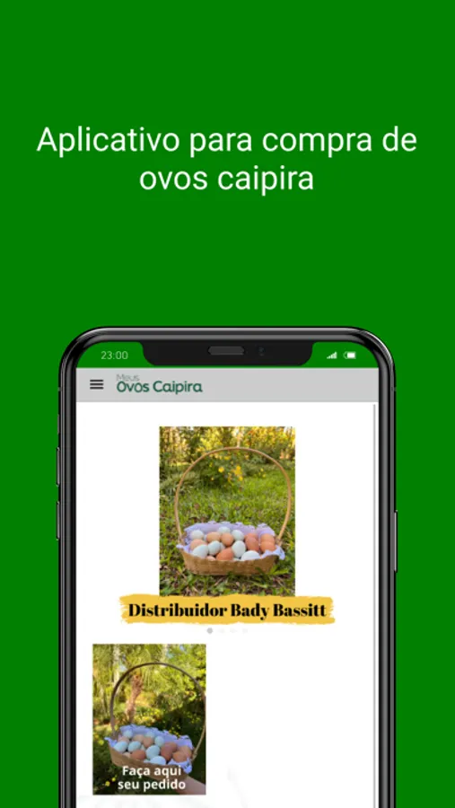 O nosso aplicativo vende exclusivamente "Meus Ovos Caipira". Somos uma produção de ovos de galinhas criadas soltas, livres de gaiolas. Esse tipo de criação da condições para que as galinhas fiquem livres para ter comportamento natural. As galinhas que produzem os “Meus Ovos Caipira” são cuidadas de forma amorosa e tem dieta balanceada, o que favorece uma boa qualidade dos ovos. A nossa produção é diária, com isso os ovos são frescos, não ficam expostos ao calor e nem guardados no supermercado, eles são colhidos e vão direto para sua mesa, pois nos preocupamos com a qualidade dos ovos que você vai comer. Para comprar é muito fácil: você escolhe a quantidade de ovos que deseja receber na sua casa, efetua o pedido e logo receberá a sua encomenda. Direto do ninho para sua mesa.
