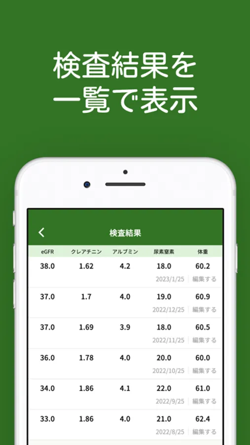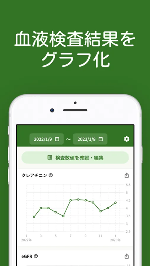 ・腎臓病をお持ちで、血液検査の結果の推移を把握したい