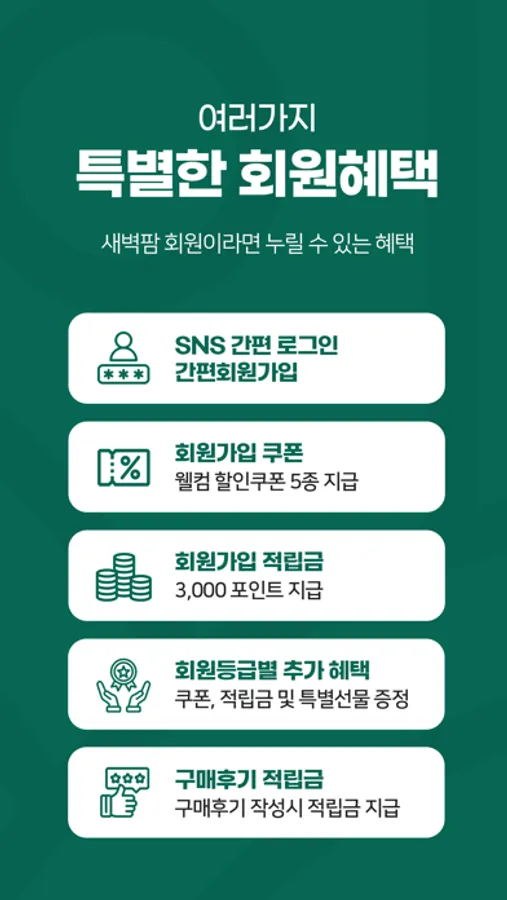 웰컴 할인쿠폰 5종, 3000포인트 적립금