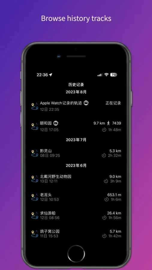4. You can choose to use Apple Watch to record GPS tracks, and browse the tracks in real time on your phone. Tracing can continue even if the phone application is exited.
