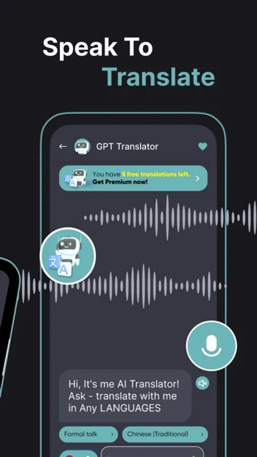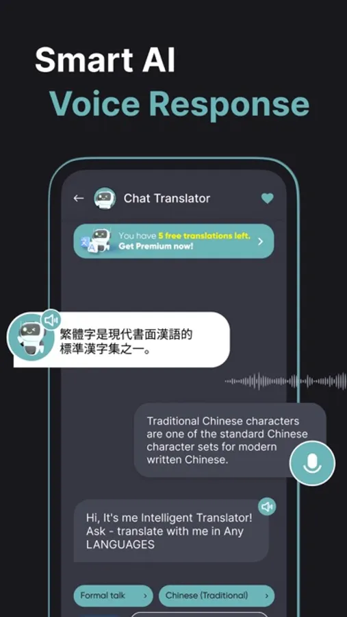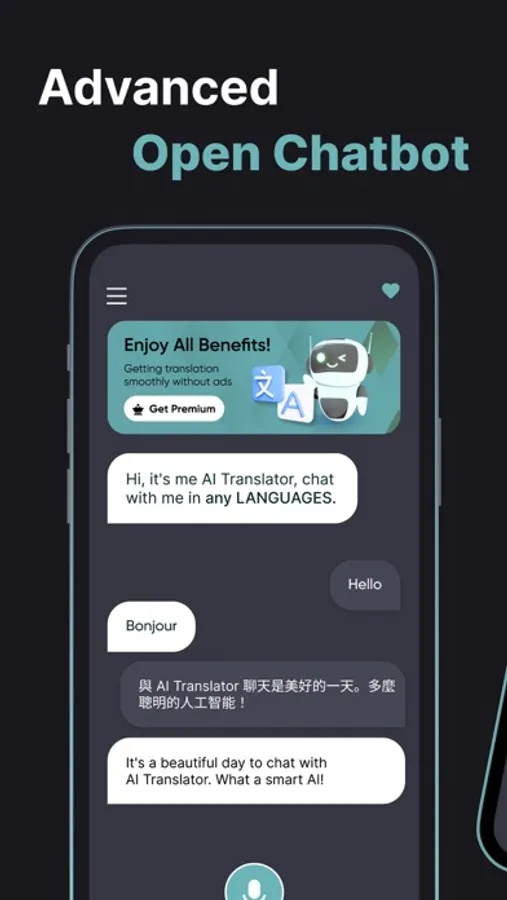 Translate Now using voice & text with Smart AI Chatbot, supporting over 200+ languages.