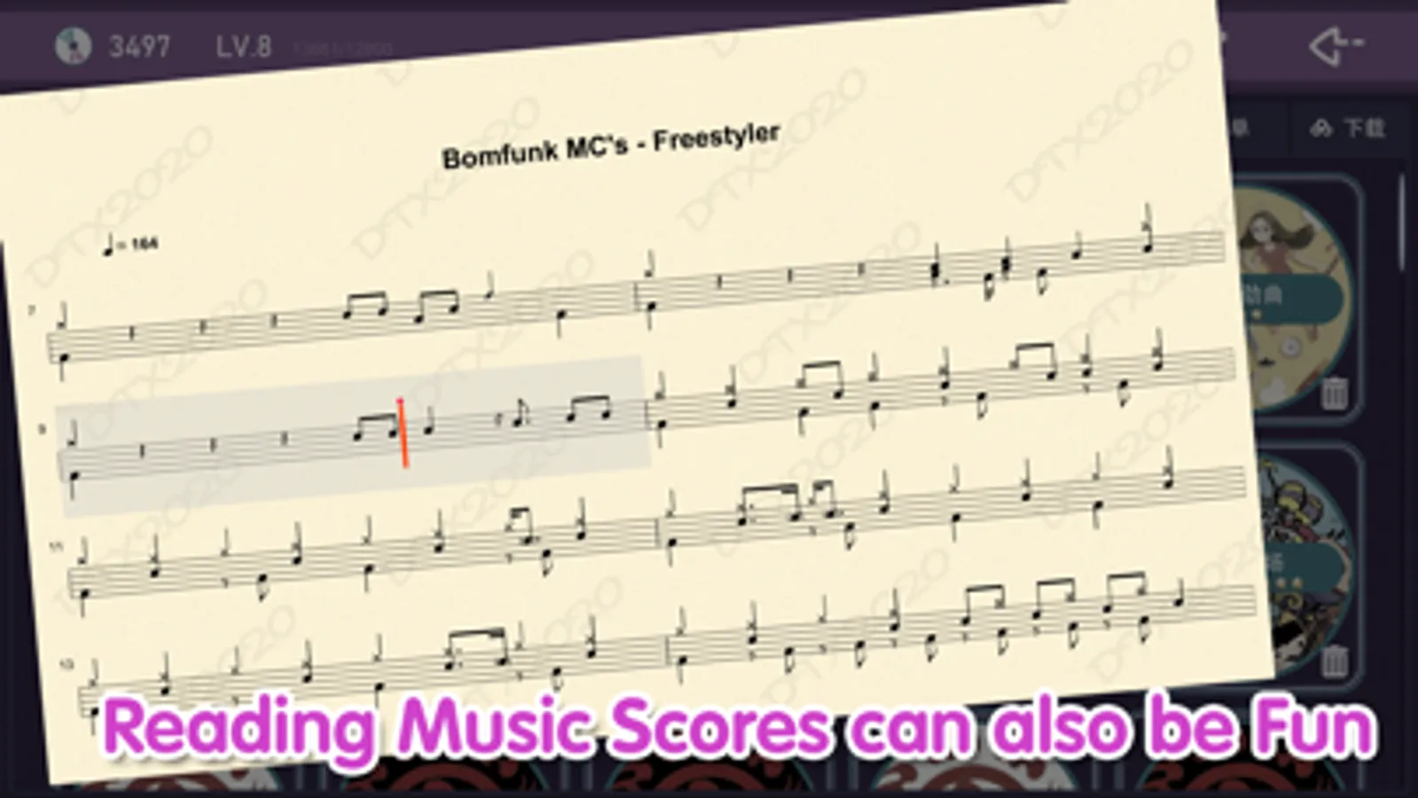 Drum Talent is a music teaching software that displays sheet music and has the following features: