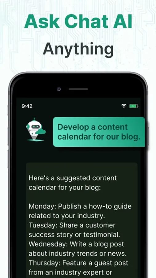 Introducing Chat AI, the revolutionary new iOS app that gives you access to the power of OpenAI's language model in the palm of your hand! With Chat AI, you can have natural and engaging conversations with an AI-powered chatbot that understands your language like never before.