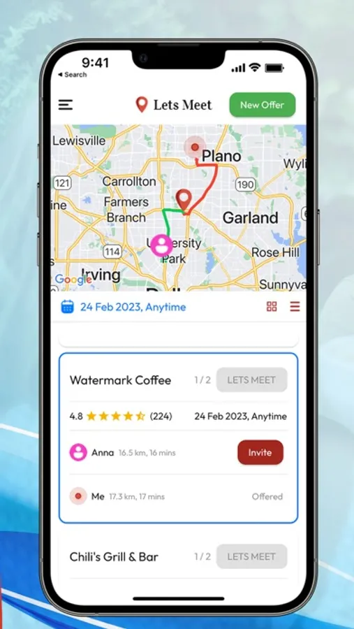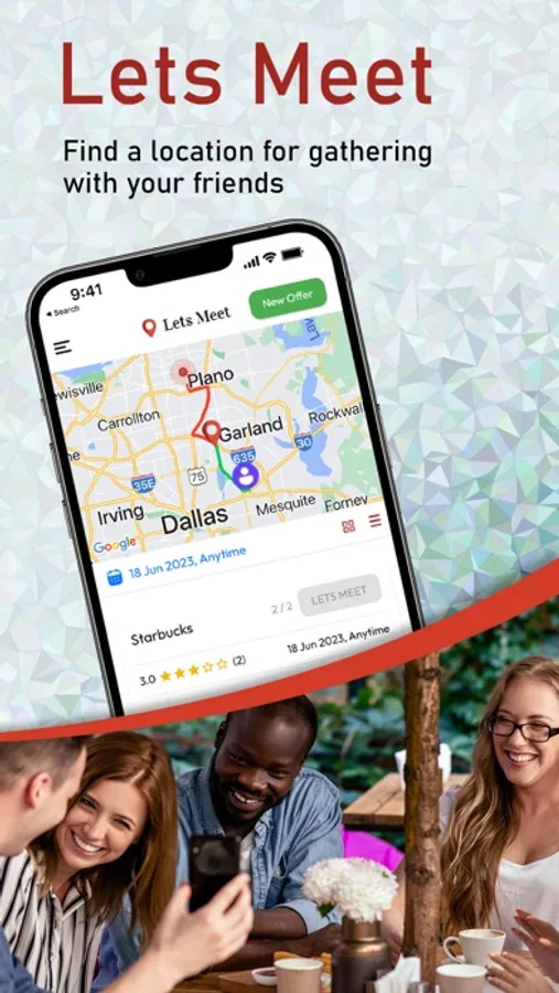 LetsMeet is an app that lets you connect and meet up with your friends at the most convenient location for everyone. It allows you to pick who you want to meet up with and where, and the app will show you places that are around the same distance from both you and the other person, or you can also customize whose location you want to be closer to and pick the best place to meet at for everyone. Each person can offer a place where they want to meet up, and everyone in the group will get to vote on where they want to go.
