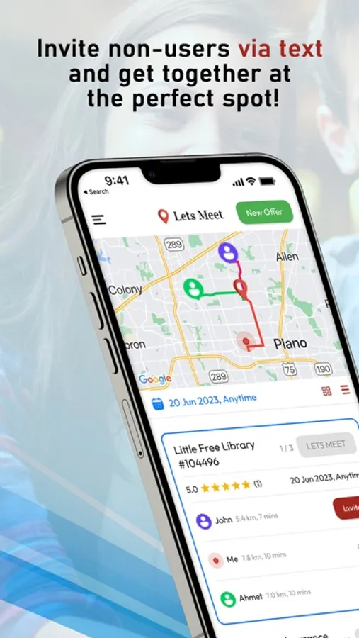 When you first download the app, sign in using your phone number, give access to your contacts, and pick you you want to meet up with. If you want to meet up with someone who is currently not a Lets Meet user, you can send them a text message invite.