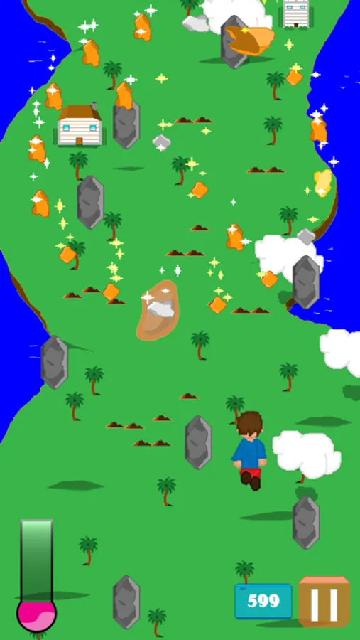 Dash, the original game mode, plays similarly to a "bullet-hell" style of gameplay, in which the player must attempt to dodge raining gray blocks, but can "leap" the appearing pink gems. Once 5 five of the pink gems have been leaped, the player will be able to utilize their Meter (located bottom left of the screen) and gain the ability for a significant speed boost & damage invincibility for a short period, earning even more points in this period! The player will also need to be wary for various Hazardous Events, signified by a blinking, red exclamation mark, which, once completed, will reward the player with a pink gem and add an extra layer of difficulty to this progressively fast game mode!