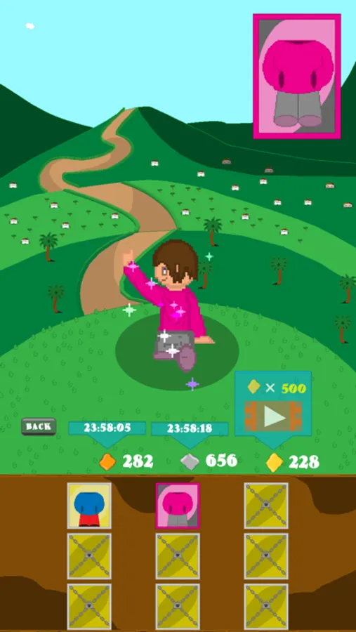 Lastly, Flash is a more puzzle-oriented style of gameplay, in which the player must keep a close-eye on the individual pink gem, which is positioned among an array of gray blocks, that become covered by Blankets and shuffle around the screen! Concentration is key in this game mode, as finding and leaping over the pink gem is determined by your ability to keep your eye on the gem! Similarly with Dash & Slash, Hazardous Events will occur throughout the game, shuffling the pink gem and the gray blocks in a more unusual way. However, no indication will be given as to when these events may occur, so stay wary! Fill your meter by leaping over pink gems in order to use a Gem Pulse, which reveals the pink gem's location! Use it as a last resort, however, as it certainly takes 5 pink gems to accumulate!