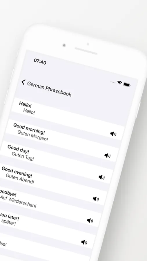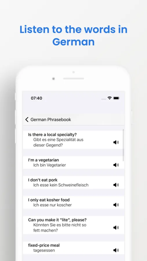 You can listen to each sentence and hear how it is pronounced in German so that you can practice the pronunciation and improve your accent.