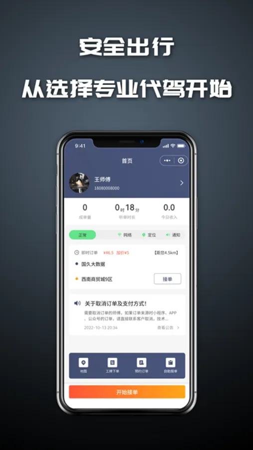 中箐代驾司机端的操作界面简洁明了,易于操作。无论您是初次使用还是老手,都可以轻松上手。
