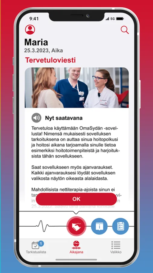 Sydänsairaala OmaSydän on mobiilisovellus potilaille, mikä tukee, ohjeistaa ja muistuttaa tärkeistä hoidon vaiheista. Sovelluksen avulla voit pitää yhteyttä Sydänsairaalaan. Sovellus on käytössä vain Sydänsairaalan asiakkaille.