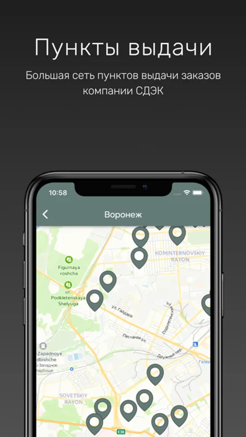 Укажите на карте пункт выдачи заказов