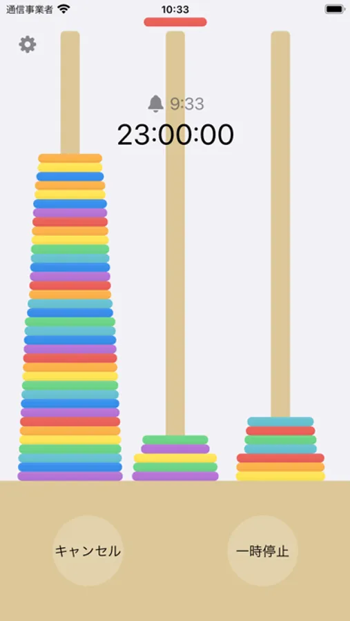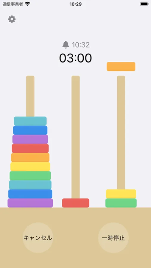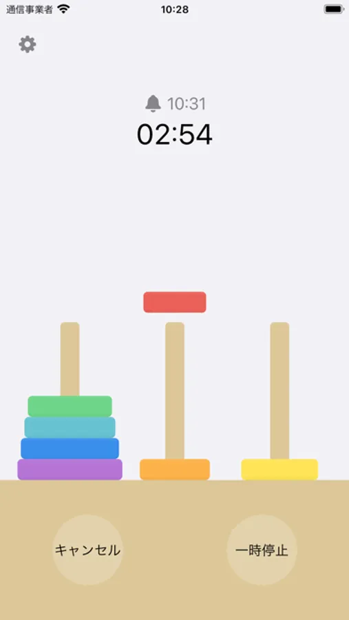 ハノイの塔のアニメーションを楽しめるタイマーです。