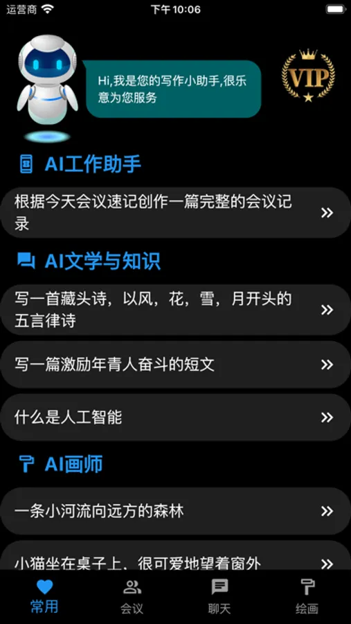 We use advanced AI models to write, paint and chat. The app can generate emails, essays, poems and any text according to your requirements.