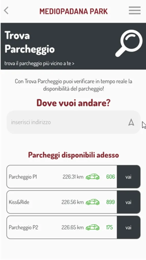 • con la funzione “Trova Parcheggio”, potrai avviare direttamente il navigatore per raggiungerlo.