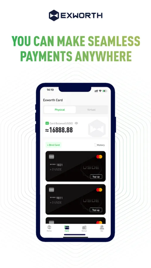 The Exworth Card, issued in partnership with MasterCard, allows direct top-up with a variety of cryptocurrencies, enabling users to make purchases anywhere in the world. The card features several unique capabilities, including multiple cryptocurrency top-ups, no cross-regional transaction fees, and seamless payments at any location that accepts Mastercard. Additionally, users have the option to choose between a physical or virtual card.