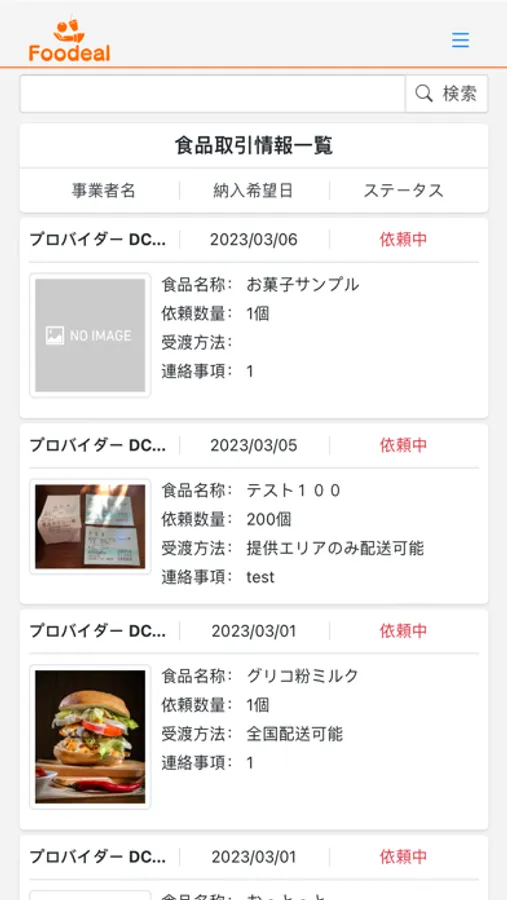 欲しい食品があればFoodealの中で依頼をすることができます。