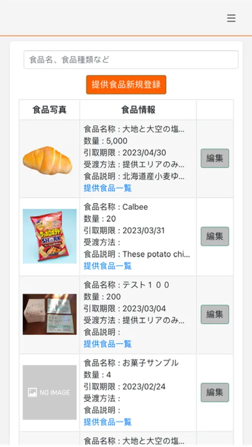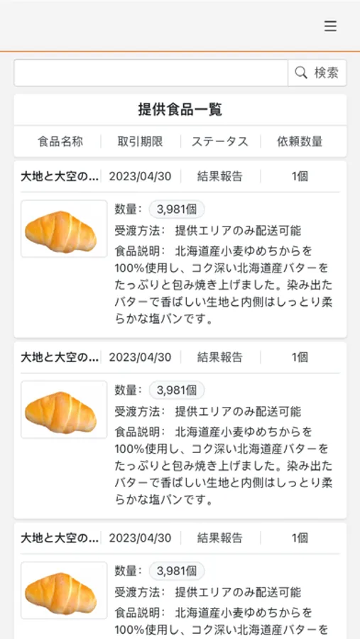 フードバンク団体では、食品提供事業者が出品した食品を検索して、