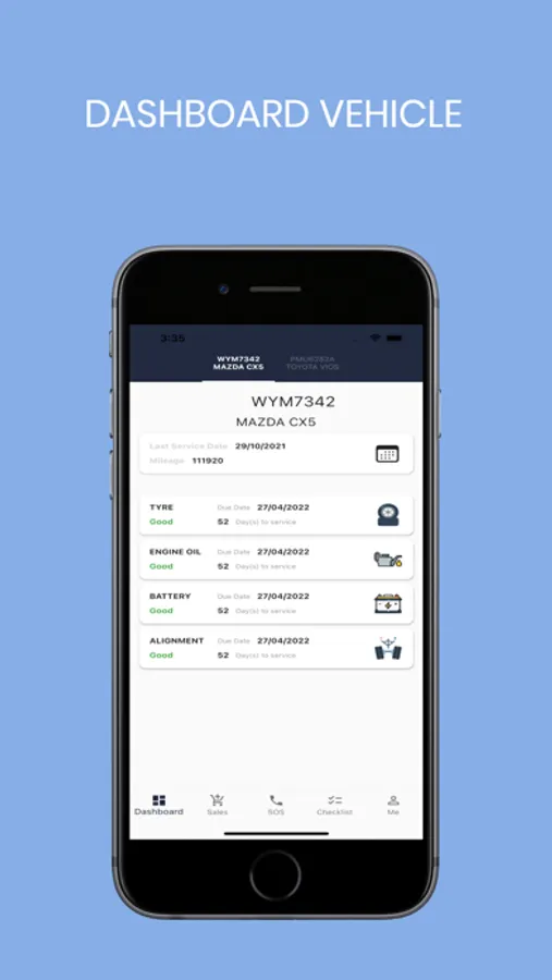 An Apps is allow user to view his own vehicle car status , purchase history , vehicle checklist . In future this app able to remind vehicle owner , his/her vehicle service is expired .