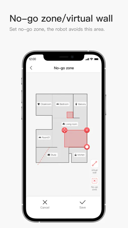 Create editable smart maps for a variety of cleaning methods: Whole house auto cleaning, Designated room cleaning, Area cleaning, Setting the cleaning sequence, Setting no-go zones, etc.