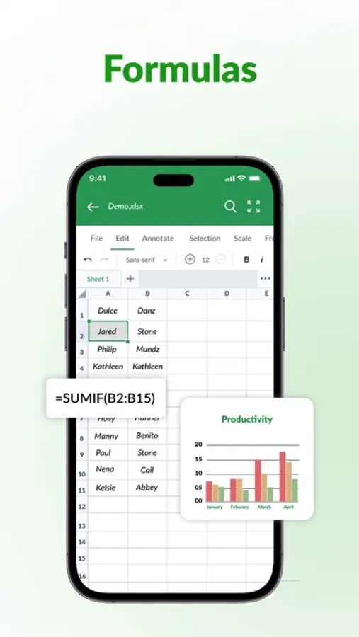 - Cut, copy, paste, format cells, and apply formulas effortlessly.