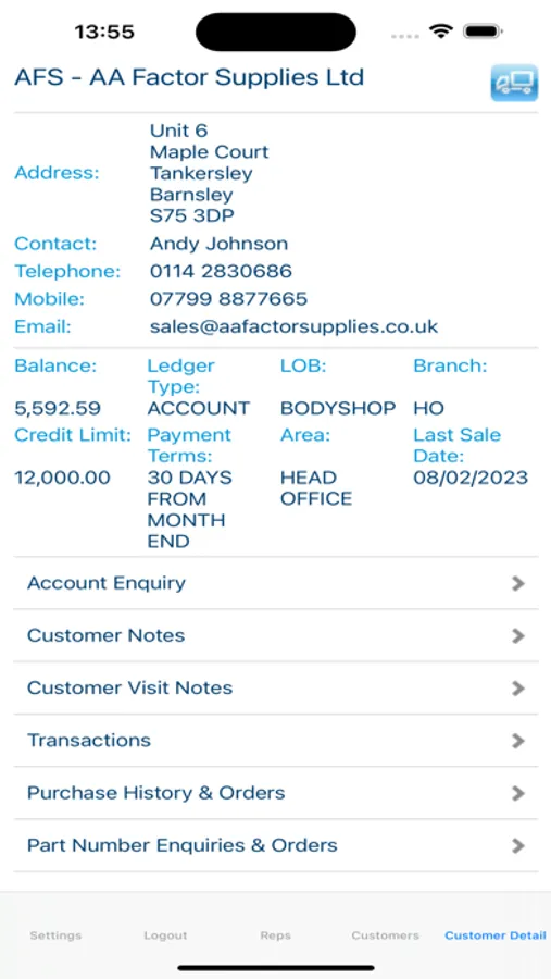 Details of visits and calls can be logged on the app and synced instantly with your branch or head office.