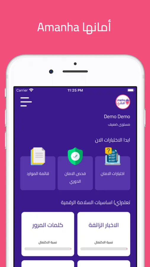 تطبيق أمانها AmanHa يساعدكم/ن في تعلم أساسيات السلامة الرقمية، من أجل التوعية بأهمية السلامة الرقمية لنساء والفتيات وغيرهن، وكذا من أجل تطوير قدراتهن في مجال أساسيات السلامة الرقمية والحقوق الرقمية.