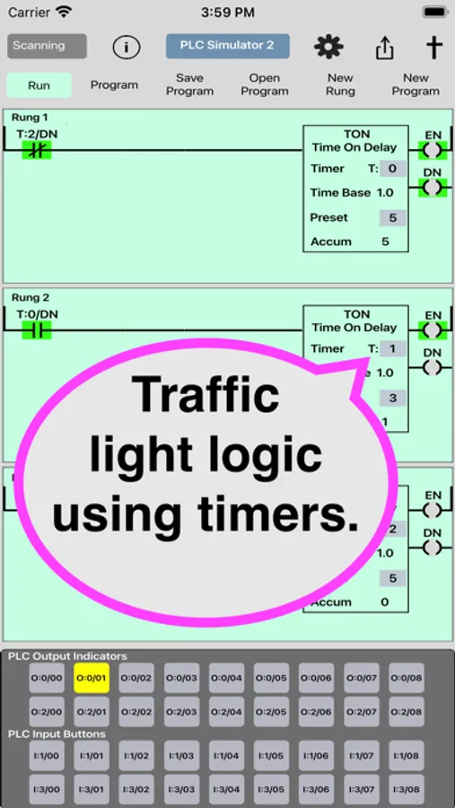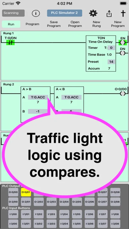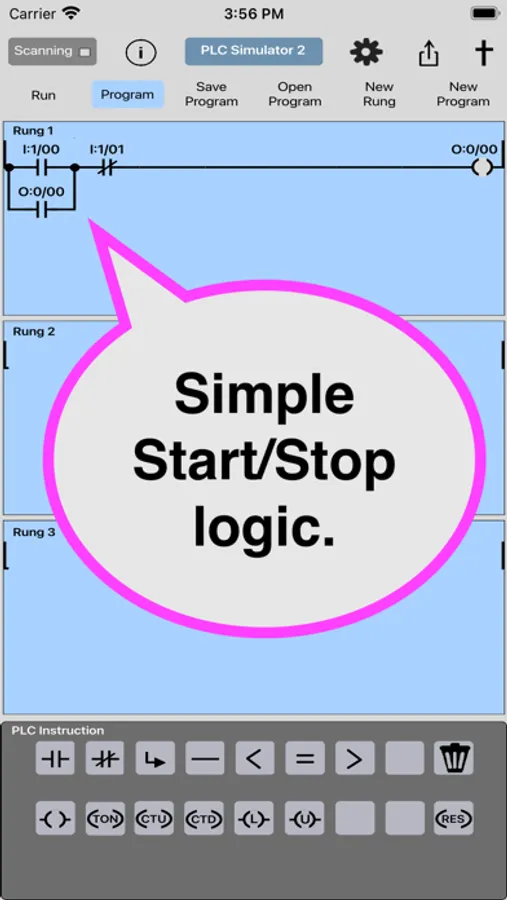 This app allows PLC students (Electricians, apprentices and college students) to test their small homework assignments using their phone and explore basic PLC programming. It has input instructions, outputs, timers, counters, latches, unlatches and compare blocks, each rung is FULLY configurable with 6 instruction long and 4 instructions deep.