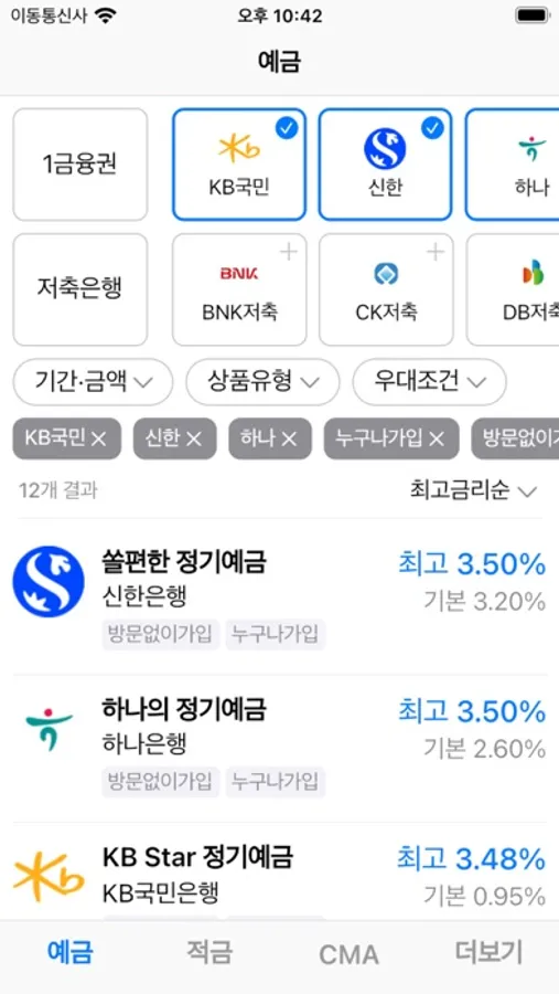 정기예금, 적금은 매우 안정적인 저축 방법 중 하나입니다. 금리 비교 앱은 저축에 관심이 있는 사용자들에게 유용한 서비스입니다. 이 앱을 통해 여러 은행의 예금과 적금, CMA 상품을 비교할 수 있습니다. 앱에서는 각 상품의 금리, 예치 기간 등을 비교하여 가장 효율적인 상품을 추천해 줍니다.