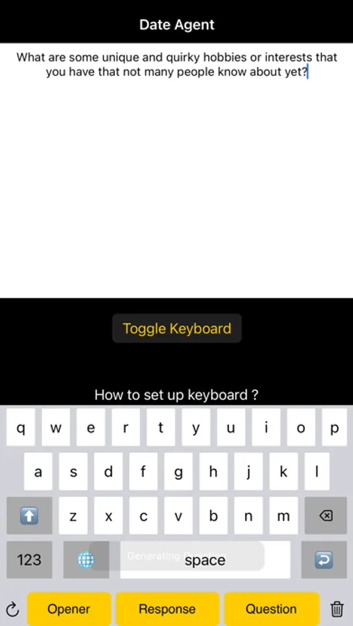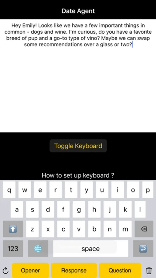 Enable the Date Agent Keyboard and use it in any preferred app, like a dating app or messenger.