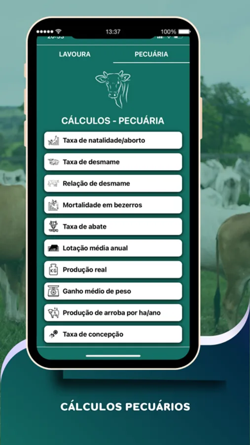 No módulo de Pecuária, você terá acesso às seguintes opções de cálculos: