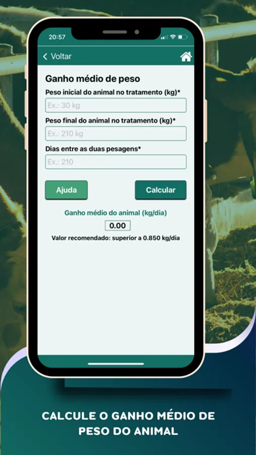 • Ganho médio diário: permite calcular o ganho médio diário do animal;