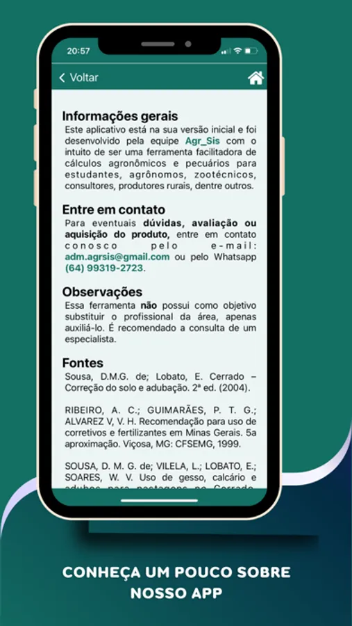 O melhor de tudo é que cada cálculo no aplicativo possui a opção de ajuda para compreender como deve ser inserido os valores nos campos obrigatórios e auxiliando também na interpretação do resultado, tornando-o uma opção acessível e conveniente para uso em campo. Além disso, a calculadora agrícola não exige conexão com a internet, permitindo que você possa utilizá-la em áreas remotas sem problemas de conexão.