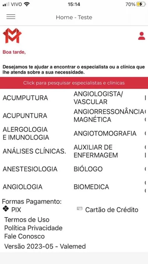 O usuário seleciona a especialidade que deseja pesquisar, a cidade, o tipo (exame, consulta ou procedimento), depois seleciona o profissional e a clínica, valida o valor a ser pago, visualiza o endereço e realiza o pagamento. Tudo de forma rápida e fácil - com poucos passos de pesquisa e cadastramento de dados.