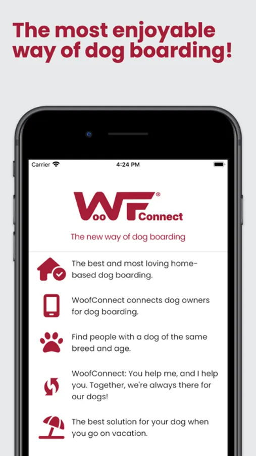 Download WoofConnect today and discover a loving second home for your dog! Start your journey towards stress-free, community-driven dog boarding and redefine your pet's care experience.