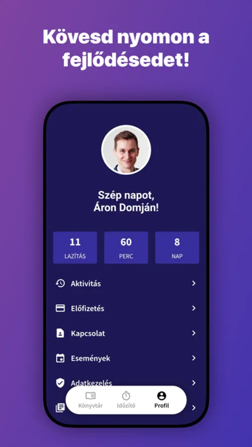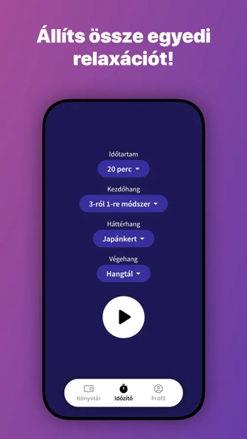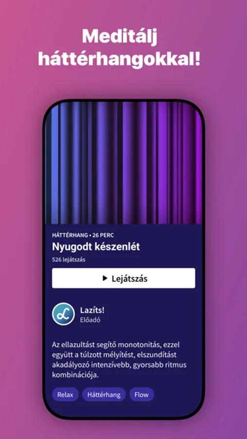 Relaxációt, meditációt, alvást segítő alkalmazás. Kezeld a stresszt rendszeres lazítással, és elérhetővé válik a nyugodtabb alvás, a testi egészség, a lelki béke. Tanulj és gyakorolj velünk!
