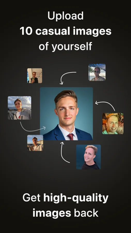 It's simple to use. All you have to do is upload 10 casual photos of yourself, edit them if necessary, select your desired bundle, and then wait for our AI to finish your images.