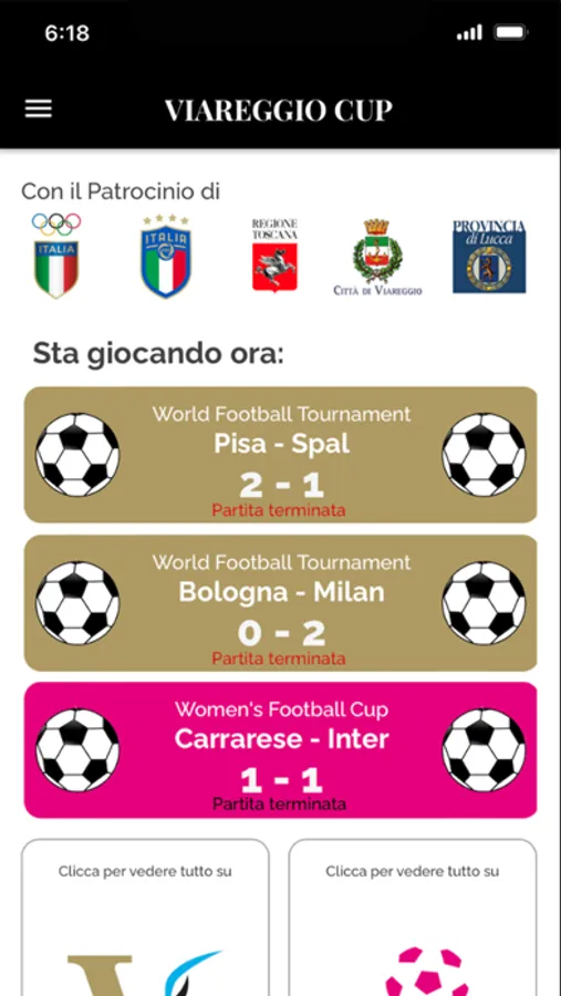 Con la app ufficiale del Torneo Viareggio Cup potrai seguire in tempo reale tutte le partite in corso, accedere alle informazioni sulle partite già giocate, consultare le classifiche, i gironi e il calendario delle partite. Rimani sempre aggiornato sulle news del torneo e sulle curiosità legate all’evento. La nostra app è la tua guida ideale per vivere al meglio l’esperienza della Viareggio Cup, ovunque tu sia! Scarica subito la nostra app e preparati a tifare per la tua squadra del cuore!