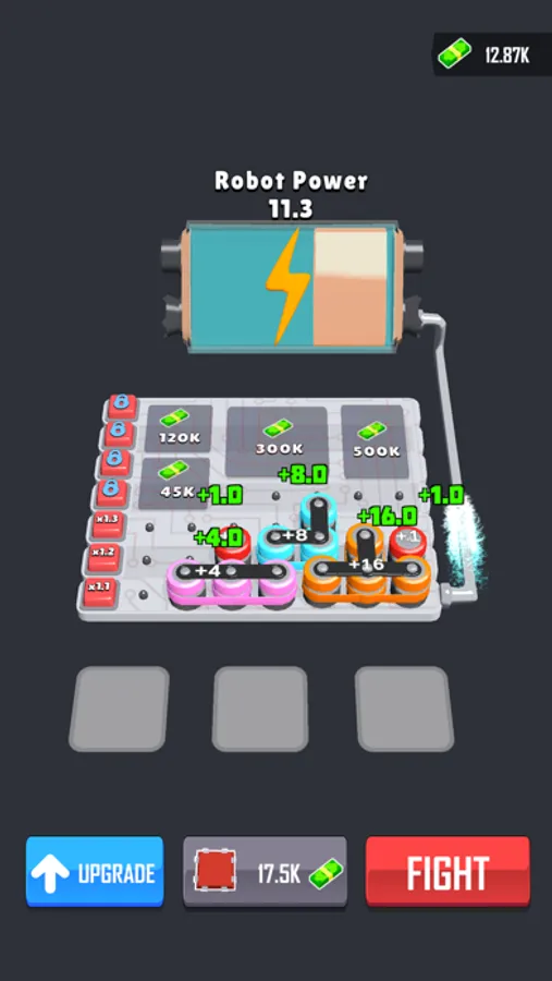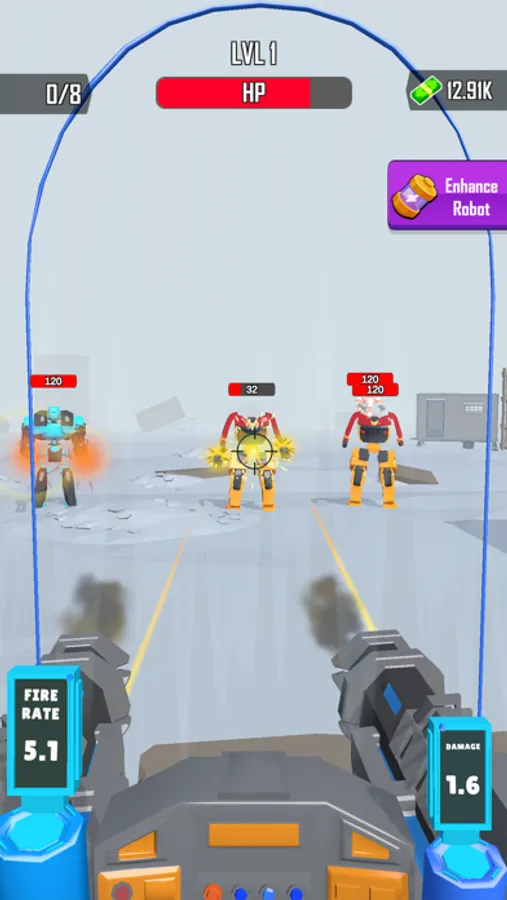 Fill up your battery and make your robot more powerful. Go and fight with enemy robots and destroy them all.