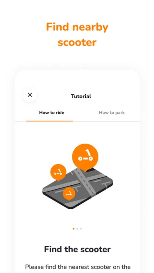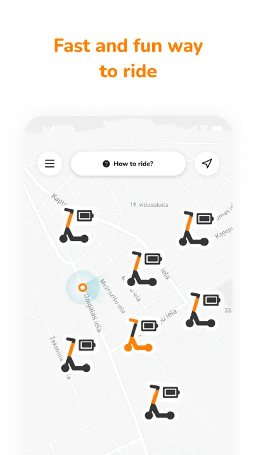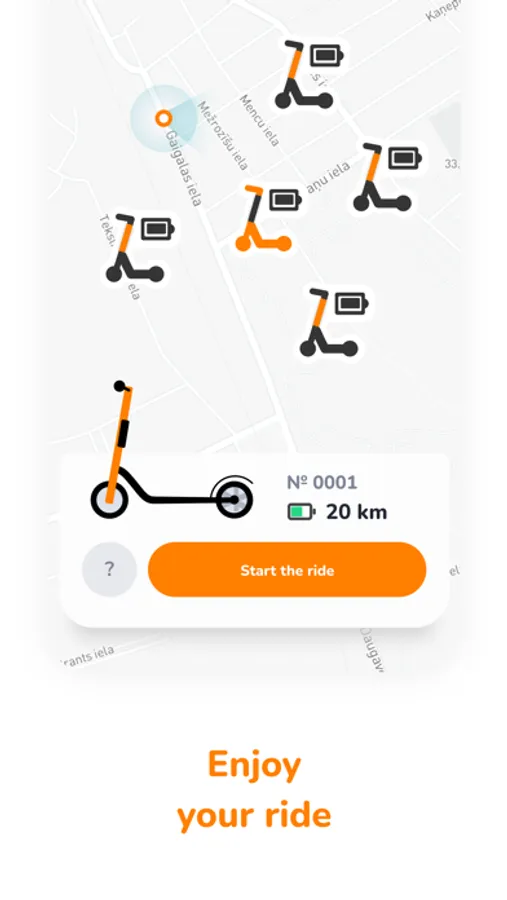 1. Log in to the app and see on the map where your nearest available Vamoz scooter is.