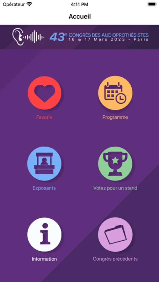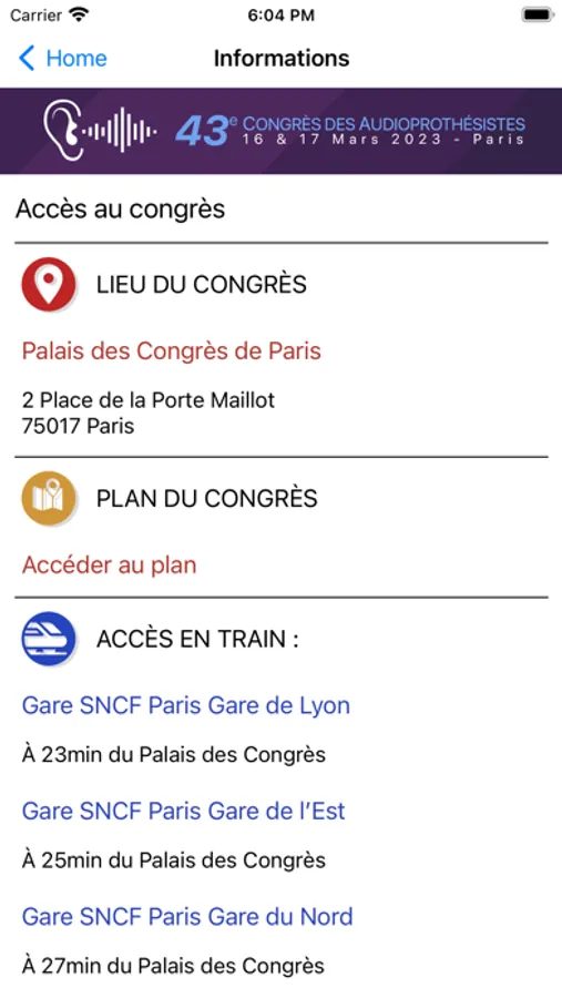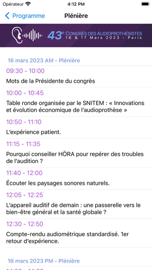 - le programme des sessions (plénière, ateliers, DPC, formation, offre d'emploi)