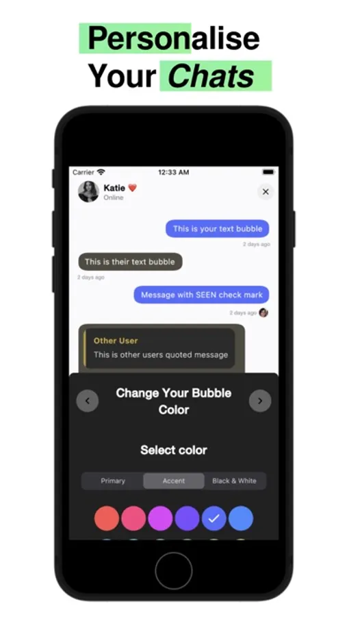 We also offer Chat Customizations, which allows you to customize each aspect of the chat. You can change the chat bubble, chat colors, chat quotation color, and much more. You can even create your own themes to make your chats unique.