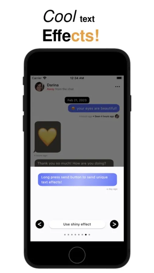 Now, let's talk about our exciting features that make conversations more fun and enjoyable. Our first feature is Text Effect. Normal text messages can be boring, but with Text Effect, you can add personality to your messages. Choose from a range of options to make your messages more expressive and enjoyable to read.