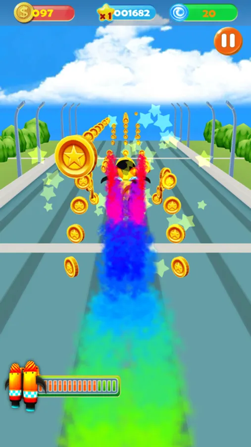 There are three roads in the game, run indefinitely, avoid obstacles, get more gold coins, exchange for more characters, be careful of ninjas on the road, and defeat them!