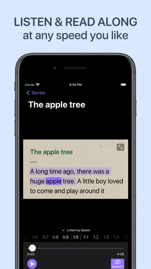 The app provides a wide selection of stories that are appropriate for learners at all levels. As you listen, it will highlight the current word being read, making it easier for you to follow along.