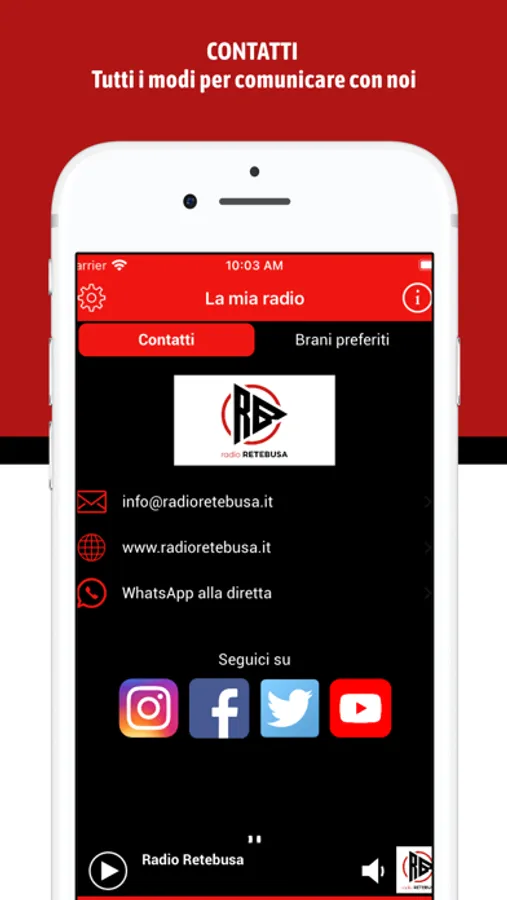 Troverai inoltre i nostri contatti per interagire con noi durante le dirette e restare aggiornato su tutte le ultime iniziative targate Radio Retebusa!