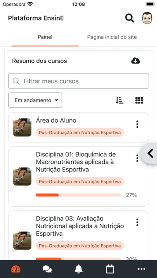 Com este app, o aluno poderá acessar a Plataforma Virtual dos cursos da EnsinE.